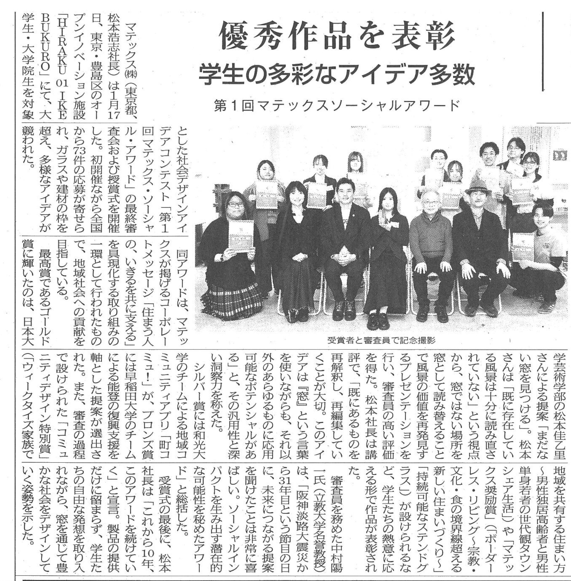 業界紙に「第1回マテックス・ソーシャル・アワード」の記事が掲載されました