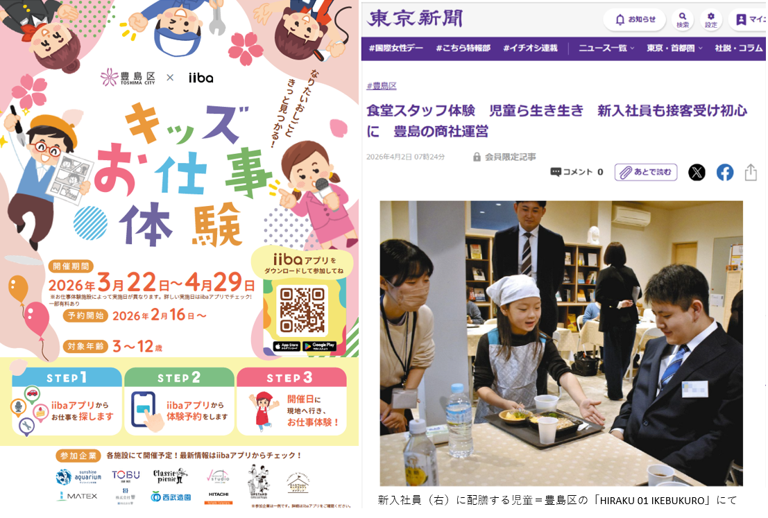 豊島区×iiba 主催「キッズお仕事体験」開催の様子が掲載されました。