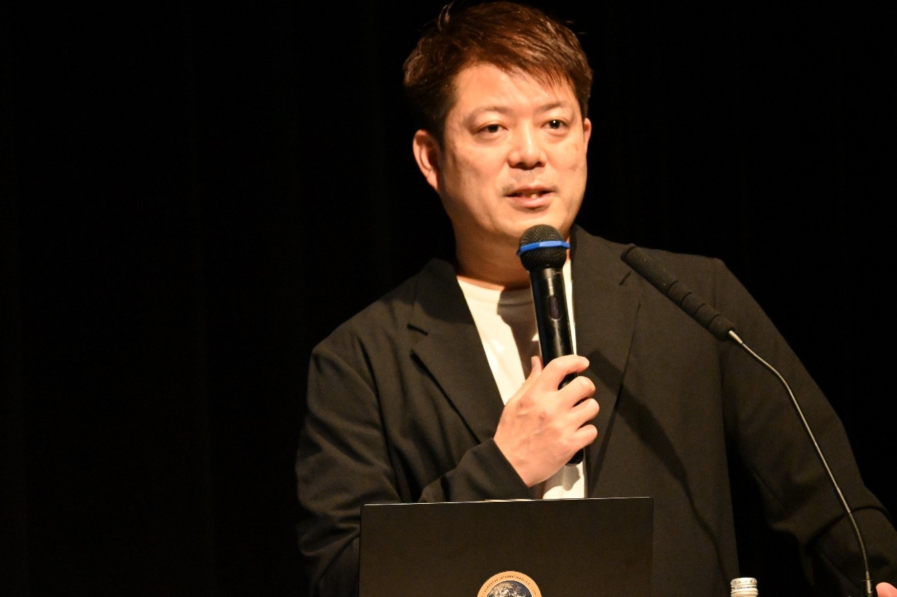 基調講演では、株式会社ぐるんとびー代表の菅原健介氏が登壇。UR賃貸住宅の一室を拠点に、高齢者とスタッフが共に外出・外食を楽しむ取り組みや、世代を超えたルームシェアの実践を紹介しました。「人には失敗する権利がある。愛があれば、なんとかなるまちづくりを」と語りました。