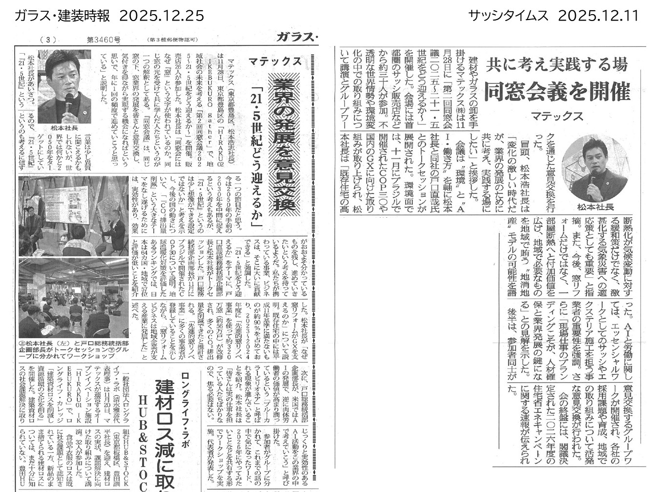2025年11月28日に開催した「第2回同窓会議 ~21.5世紀をどう迎えるか~」の内容が業界紙に掲載されました。