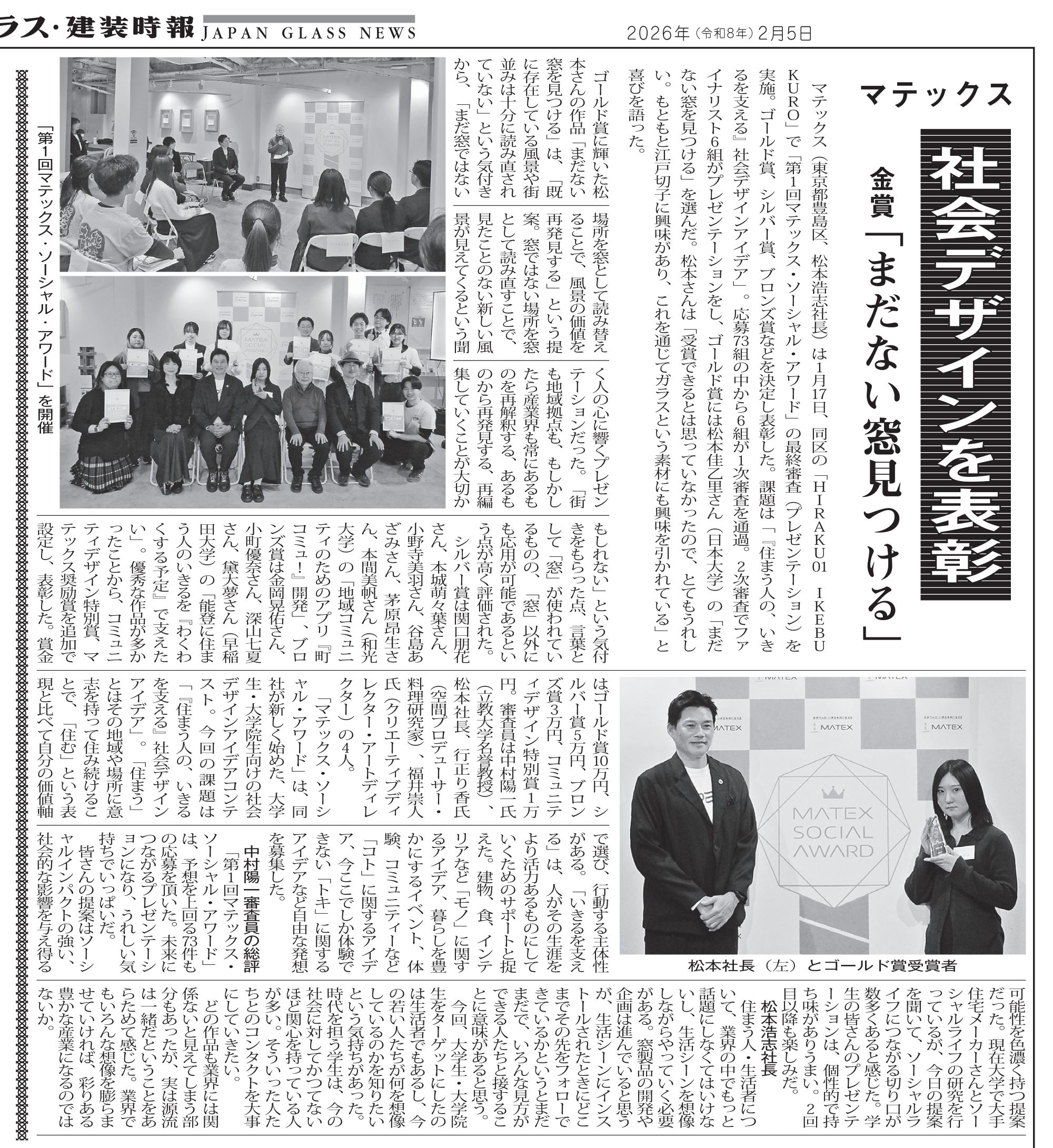 業界紙に「第1回マテックス・ソーシャル・アワード」の記事が掲載されました